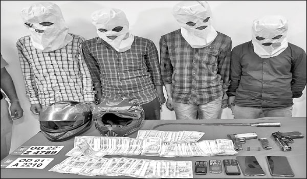 କଟକ ,୧୩।୧୧: ବ୍ୟାଙ୍କ ଡକାୟତି ଘଟଣାରେ ଜଗତ୍ପୁର ପୋଲିସ ଏକ ଆନ୍ତଃଜିଲା ଡକାୟତି ଗ୍ୟାଙ୍ଗର ୪ ଜଣଙ୍କୁ ଶୁକ୍ରବାର ଗିରଫ କରିଛି। ସେମାନେ ହେଲେ ଟାଙ୍ଗୀ ଥାନା ଅଧୀନ ଗୋବିନ୍ଦପୁର ଅଞ୍ଚଳରର ଦୁଇଭାଇ ଦୀପୁ ଓରଫ ଚକ୍ରଧର ସେଠୀ(୨୩) ଓ ଲିପୁ ଓରଫ କ୍ଷୀରୋଦ ଚନ୍ଦ୍ର ସେଠୀ(୨୦), ଚିକୁ ଓରଫ ଖଗେଶ୍ୱର ଜେନା(୨୭), ଜଗତ୍ସିଂହପୁର ଜିଲା ଏରସମା ଅଞ୍ଚଳର ବାବୁ ଓରଫ ପ୍ରତାପ ଦାସ(୨୭)। ସେମାନଙ୍କଠାରୁ ୨ଟି ବାଇକ୍, ୧ ଲକ୍ଷ ଟଙ୍କା, ଗୋଟିଏ ୯ ଏମ୍ଏମ୍ ପିସ୍ତଲ, ଗୋଟିଏ ଖେଳନା ବନ୍ଧୁକ, ଦୁଇଟି ଗୁଳି, ଗୋଟିଏ ମାରଣାସ୍ତ୍ର, ହେଲ୍ମେଟ୍, ନକଲି ନମ୍ବର ପ୍ଲେଟ୍ ଓ ୫ଟି ମୋବାଇଲ ଫୋନ୍ ଜବତ ହୋଇଥିବା ଡିସିପିଙ୍କ କାର୍ଯ୍ୟାଳୟରେ ଅନୁଷ୍ଠିତ ଖବରଦାତା ସମ୍ମିଳନୀରେ ଡିସିପି ପ୍ରତୀକ୍ ସିଂ ସୂଚନା ଦେଇଛନ୍ତି।