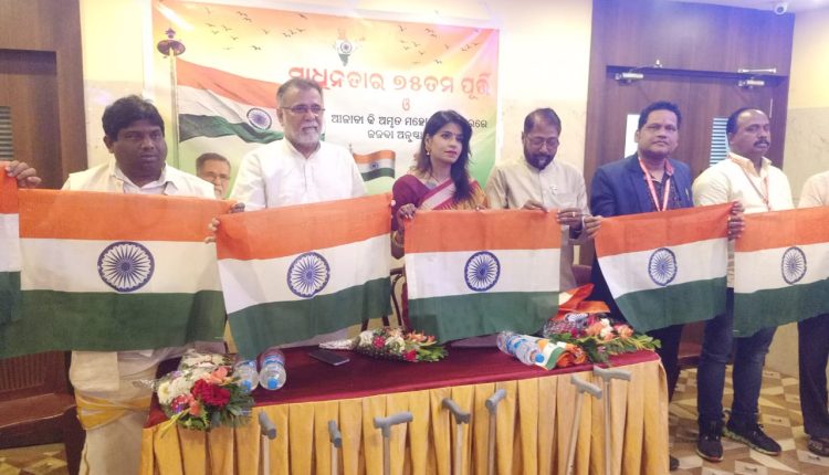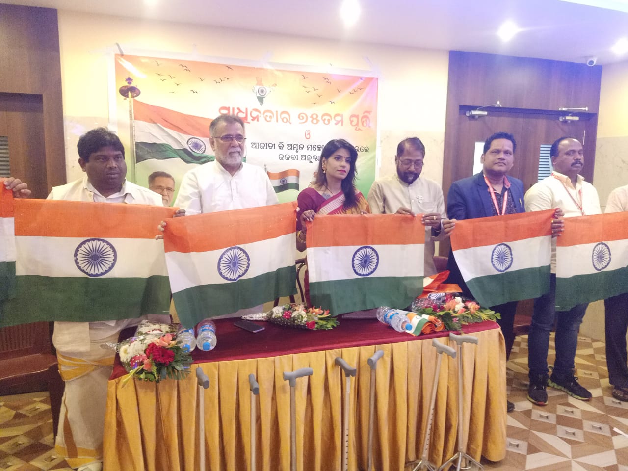 ଜଜବା ପକ୍ଷରୁ ହର୍ ଘର ତ୍ରିରଙ୍ଗା କାର୍ଯକ୍ରମରେ ଭିନ୍ନକ୍ଷମ ମାନଙ୍କୁ ହ୍ୟାଣ୍ଡ ଷ୍ଟିକ୍ ଓ ଜାତୀୟ ପତାକା ବଣ୍ଟନ
